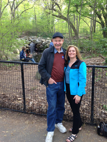 Hiking at Cold Spring, New York, with the Hudson in the background.